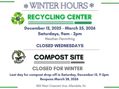 The December 18, 2025 meeting of the Mayor and Council of the Borough of Allendale will be held in-person at the Allendale Municipal Building, 500 West Crescent Avenue, Allendale, New Jersey 07401. The Work Session will begin at 7:00 p.m., immediately followed by the Regular Session in the Council Chambers located on the second floor. The Borough of Allendale will also livestream the Work and Regular Sessions.